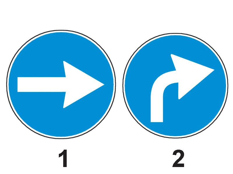 Both signs oblige to change the direction of travel to the right. The difference between the two signs is the following: