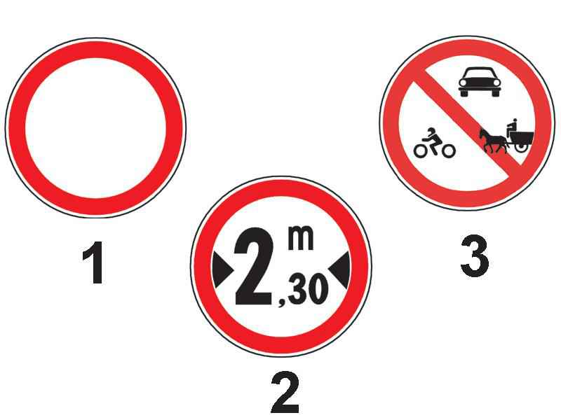 Toate cele trei indicatoare din imagine interzic accesul vehiculelor cu lățimea mai mare de 2,30 m, dar în moduri diferite: